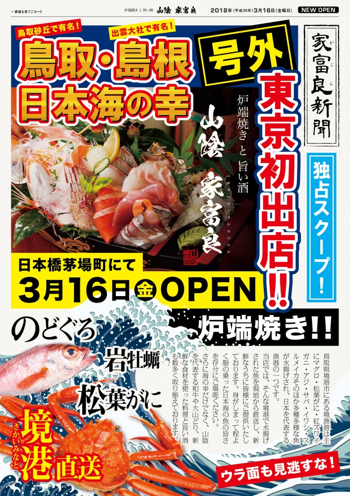 大都会TOKYOの皆様にも山陰の海の幸をはじめとした