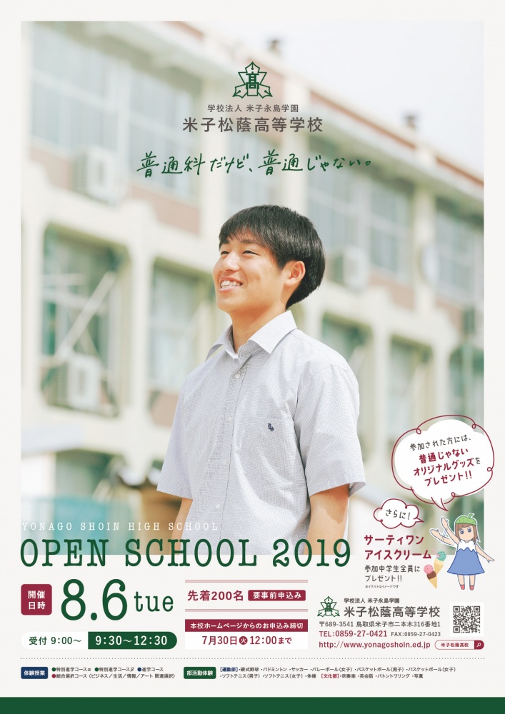 米子松蔭高等学校様のオープンスクール2018ポスター です。