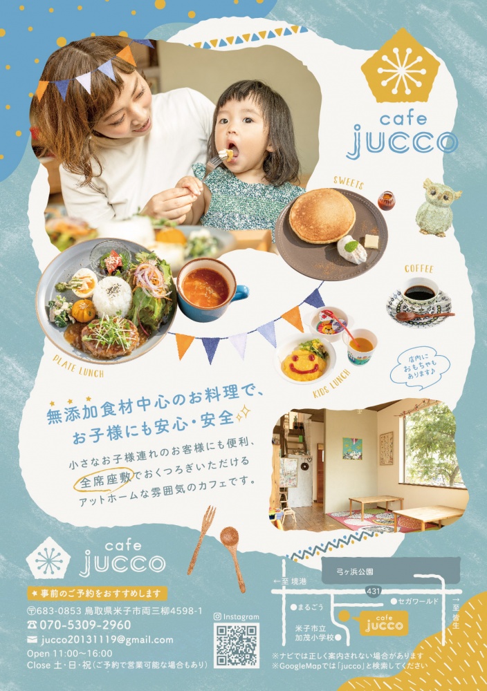 「jucco」の文字は、仲良く一緒に並んだり、我が子を優しく包み込む親子の様子を、二重線で表現しました。