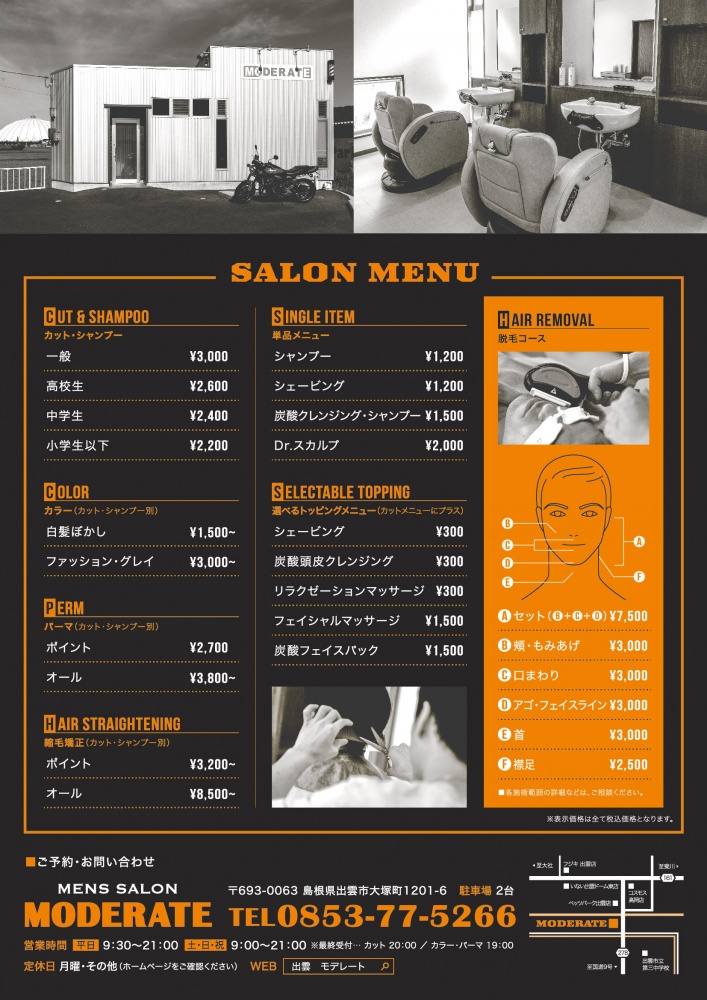 出雲市の理容室 MODERATE(モデレート)様のA4チラシを制作させていただきました。
