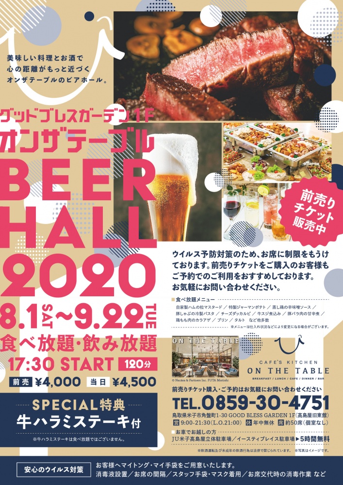 洋食・カフェのON THE TABLE様では、9月22日まで飲み放題・食べ放題のビアホール開催中です!