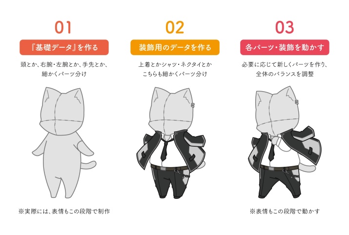 衣装が変わる場合は02から再制作し、あとはひたすら03を繰り返して全ポーズの完成です。