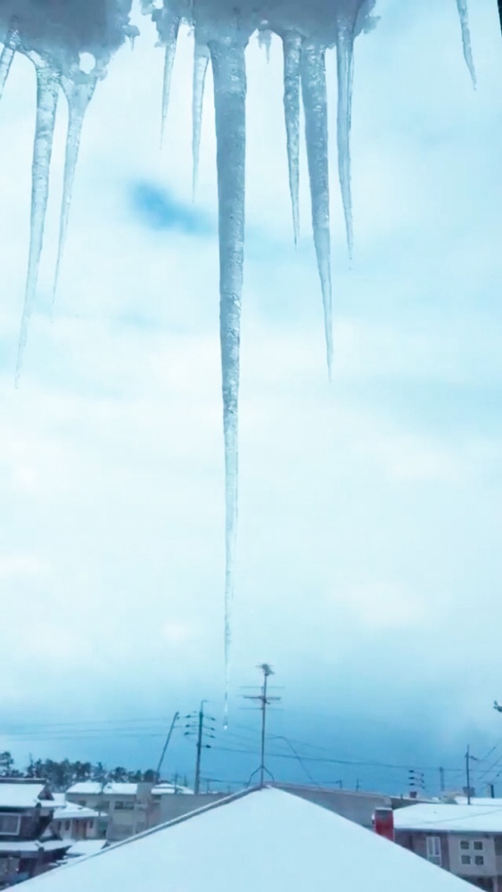 先週の寒波で我が家の屋根からこんな長いツララができました。