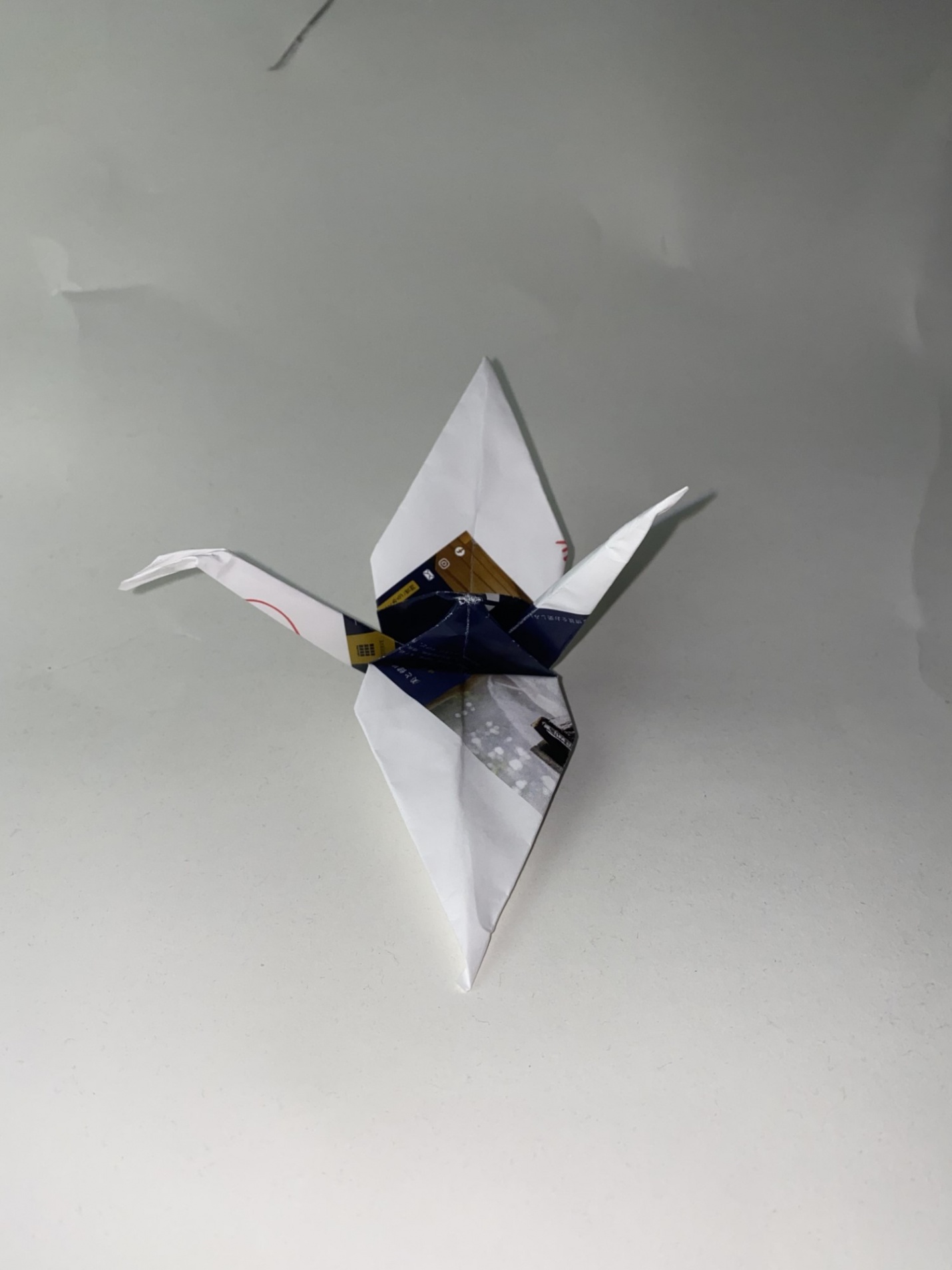 A4用紙から作った折り鶴。