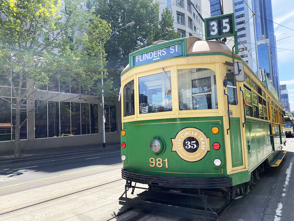 中心地は無料のトラムが走っていて、歩きと無料のトラムで中心部は大体回れます。その中でもこのトラムNo.35はレトロで可愛い!フリートラムゾーンの外周を走っているので、メルボルンの街を一周できて観光に便利です♪