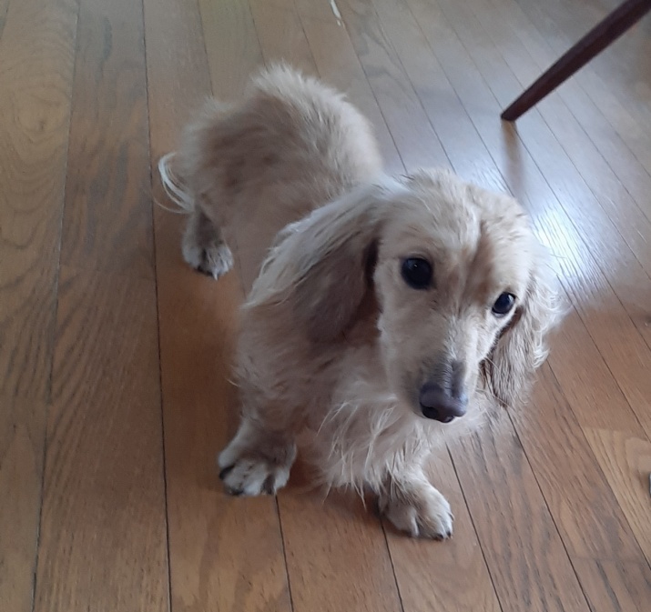 シャンプーしたてだったので獣医さんの助手のお姉さんに「サラサラだね〜」とよしよしされて嬉しそうなわんこさん。