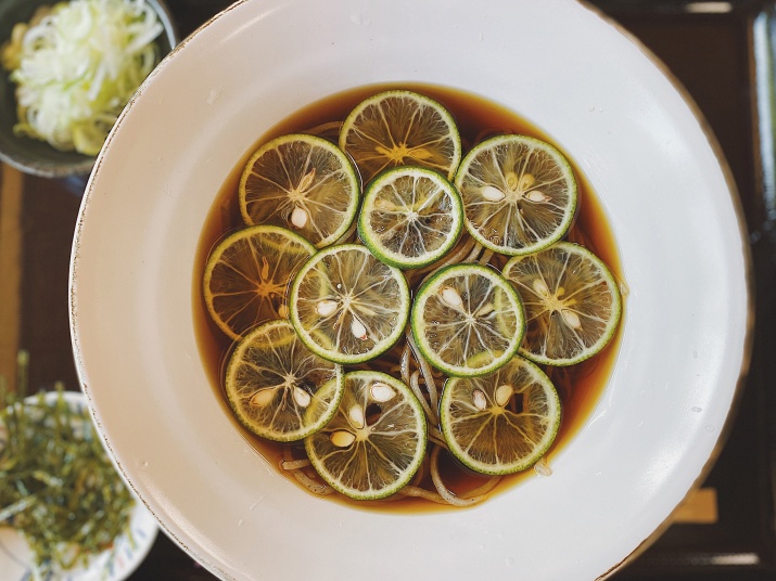 もちろん味も冷たくてすだちの酸味が爽やかに香ります。コシのある蕎麦と相性抜群。
