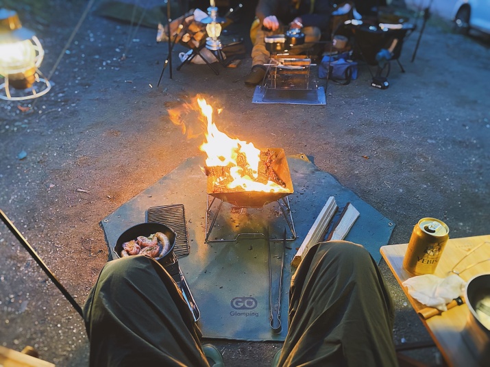 雪はないけど、まだまだ寒い時期。焚き火があったかいです 😳