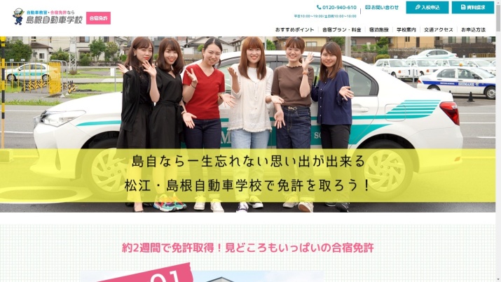 まとめサイト的なサービスには載っていない、合宿免許専門に特化した島根自動車学校の公式HPがすぐに検索に引っかかりました。