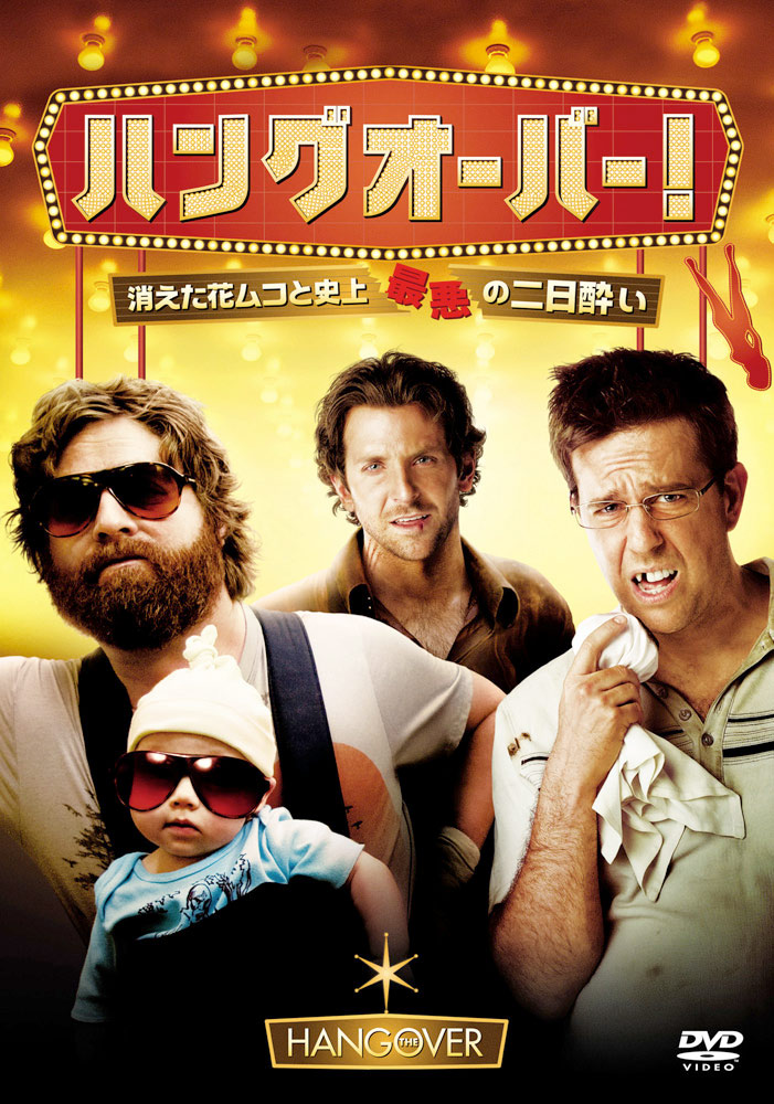 バチェラーパーティー(新郎が独身最後の夜を同性と過ごすパーティーのこと)で酷い二日酔いで記憶が無い中で新郎が行方不明だから探そうぜって感じのコメディ映画です。