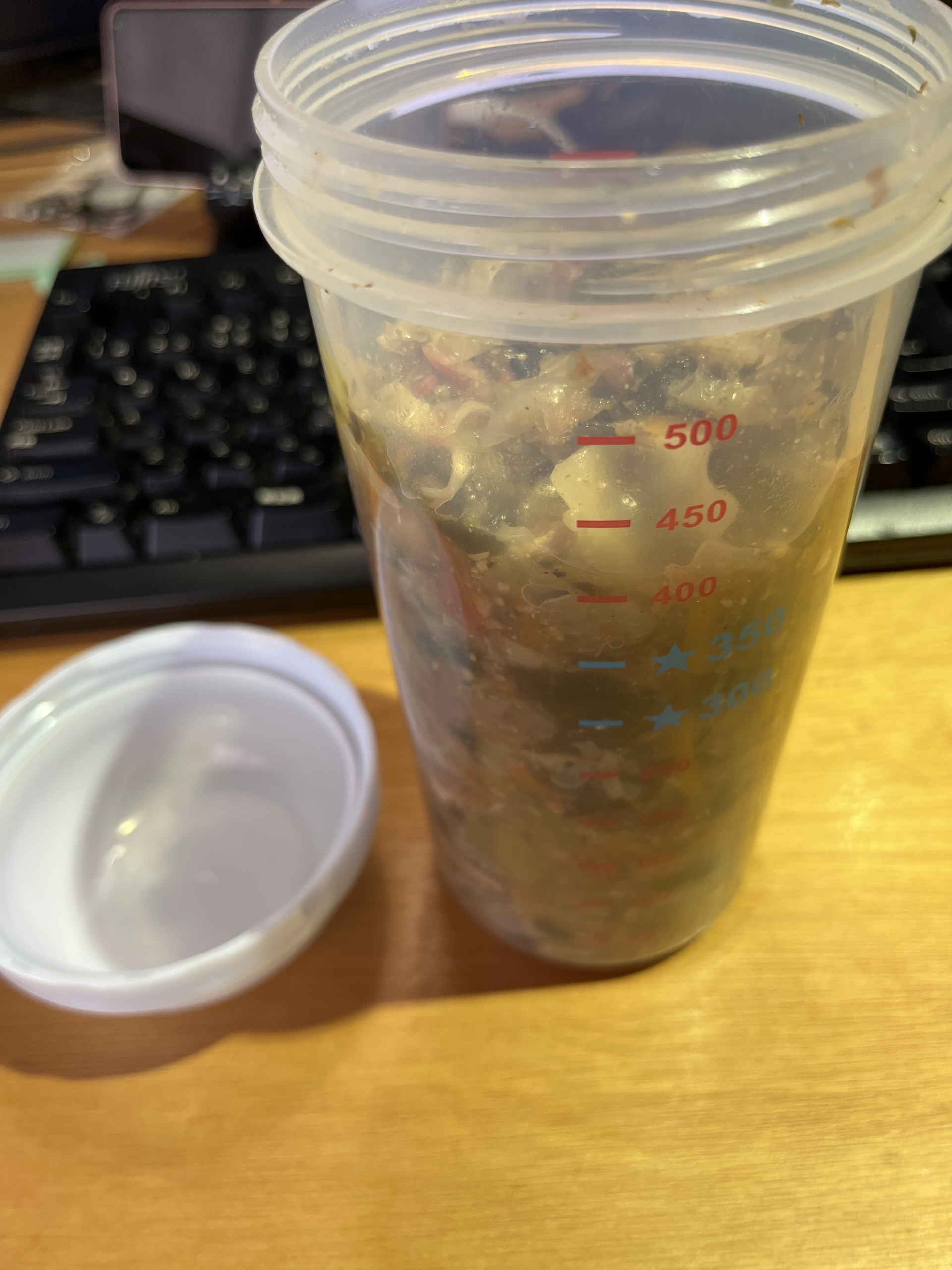 – 昼ご飯:野菜スープ(300~400g)、主菜(肉・魚)、ごはん70g、無糖ヨーグルト(腸活用)