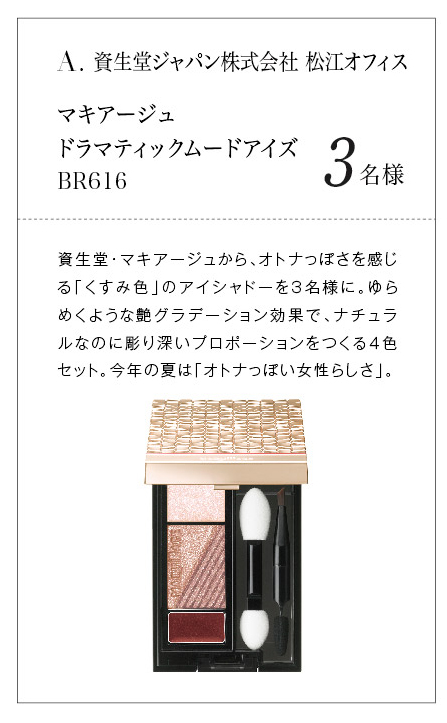 発刊したばかりのルッコラ25号に、資生堂さんより読者プレゼントをご協力いただいています!!!