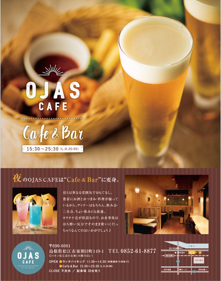 OJAS CAFE 様とは今まで何度かお仕事させていただきましたが、今回はチラシとポスターなど一式を制作させていただきました。