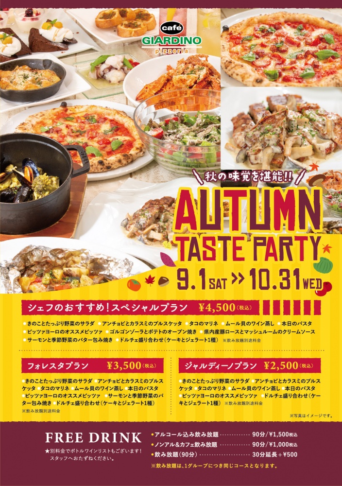 きのこやサーモンなど秋の味覚を取り入れたパーティープランが
