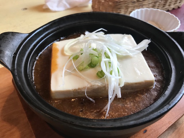 早速このお豆腐をスプーンを使い崩していきます。(崩さずそのまま食べるのも良さそうでした。)