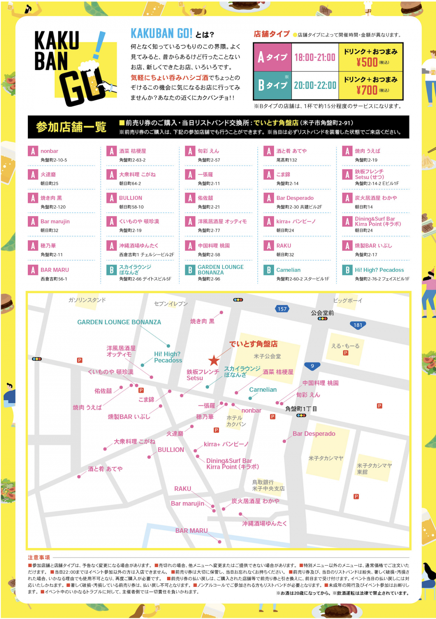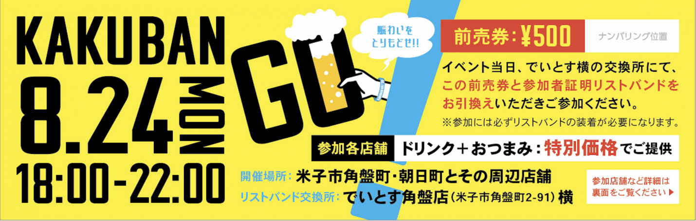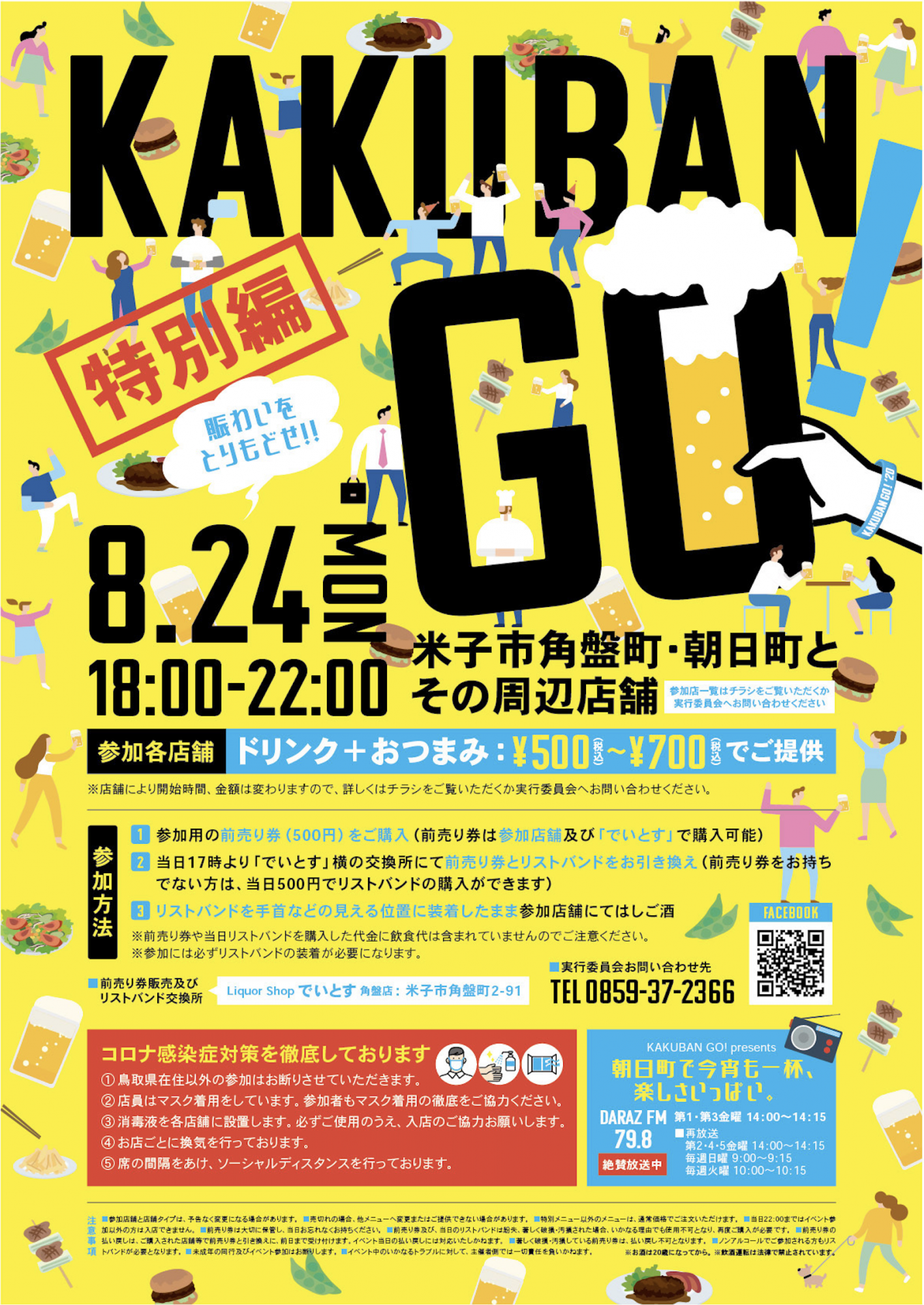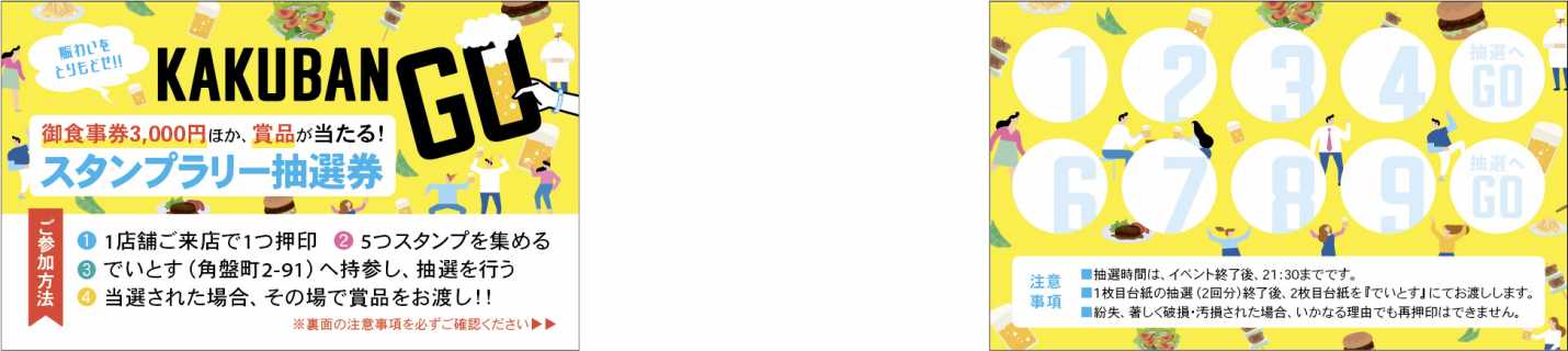 KAKUBAN GOとは気軽に楽しくハシゴ酒をテーマに角盤町及び朝日町のお店が集い、協力しながら角盤町を盛り上げていこうというイベントです(^^)/