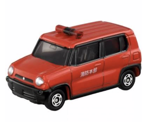 これは消防車なのか?車体には確かに消防本部と記載はあるが、ハシゴもホースもないランプの付いた、スズキのハスラーです。