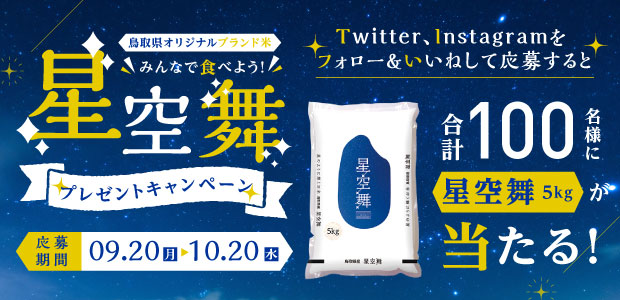 このキャンペーンでは、鳥取県が誇るブランド米【星空舞5㎏】が抽選で100名様に当たります✨️