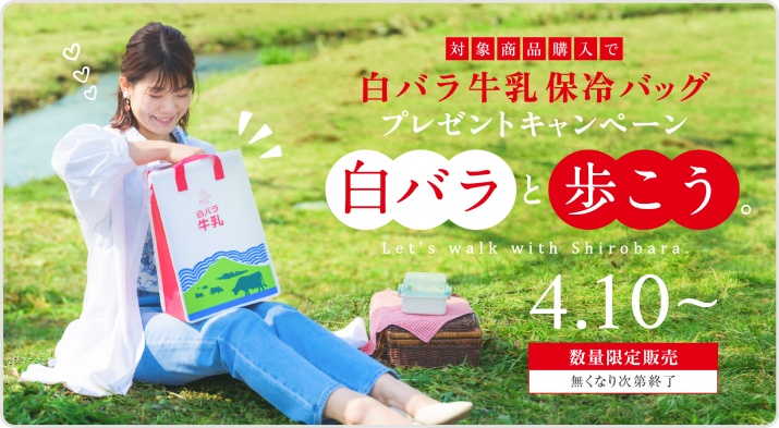 対象商品をご購入で、白バラ牛乳保冷バッグが付いてくるキャンペーンが実施中です!