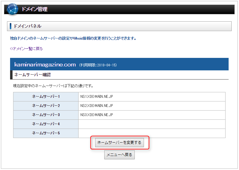では【ネームサーバーを変更する】で設定を変更しましょう。