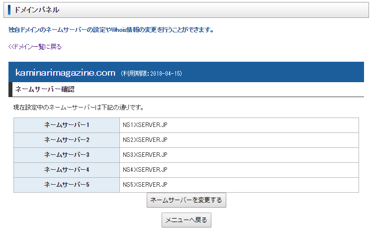 | エックスサーバー | ns1.xserver.jp ns2.xserver.jp ns3.xserver.jp ns4.xserver.jp ns5.xserver.jp |