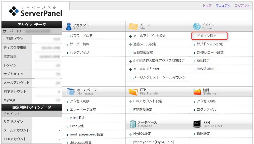 エックスサーバーの管理画面に入って【ドメイン設定】を選びましょう。