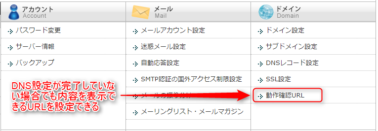 このドメインに対してどのような設定をするかをメニューから選択します。