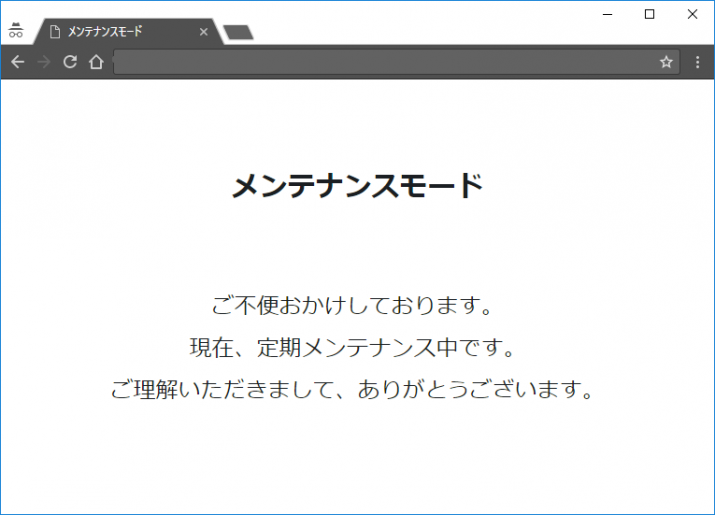 バックアップデータからデータを復元している間はこのメンテナンスモード表示していました。