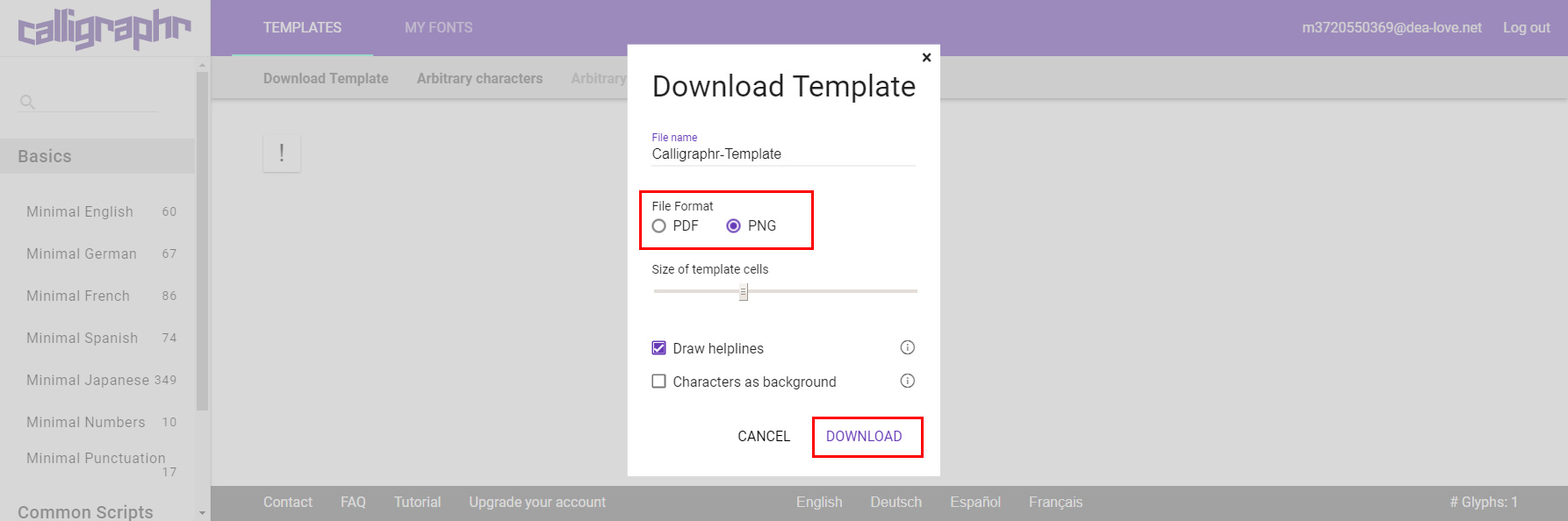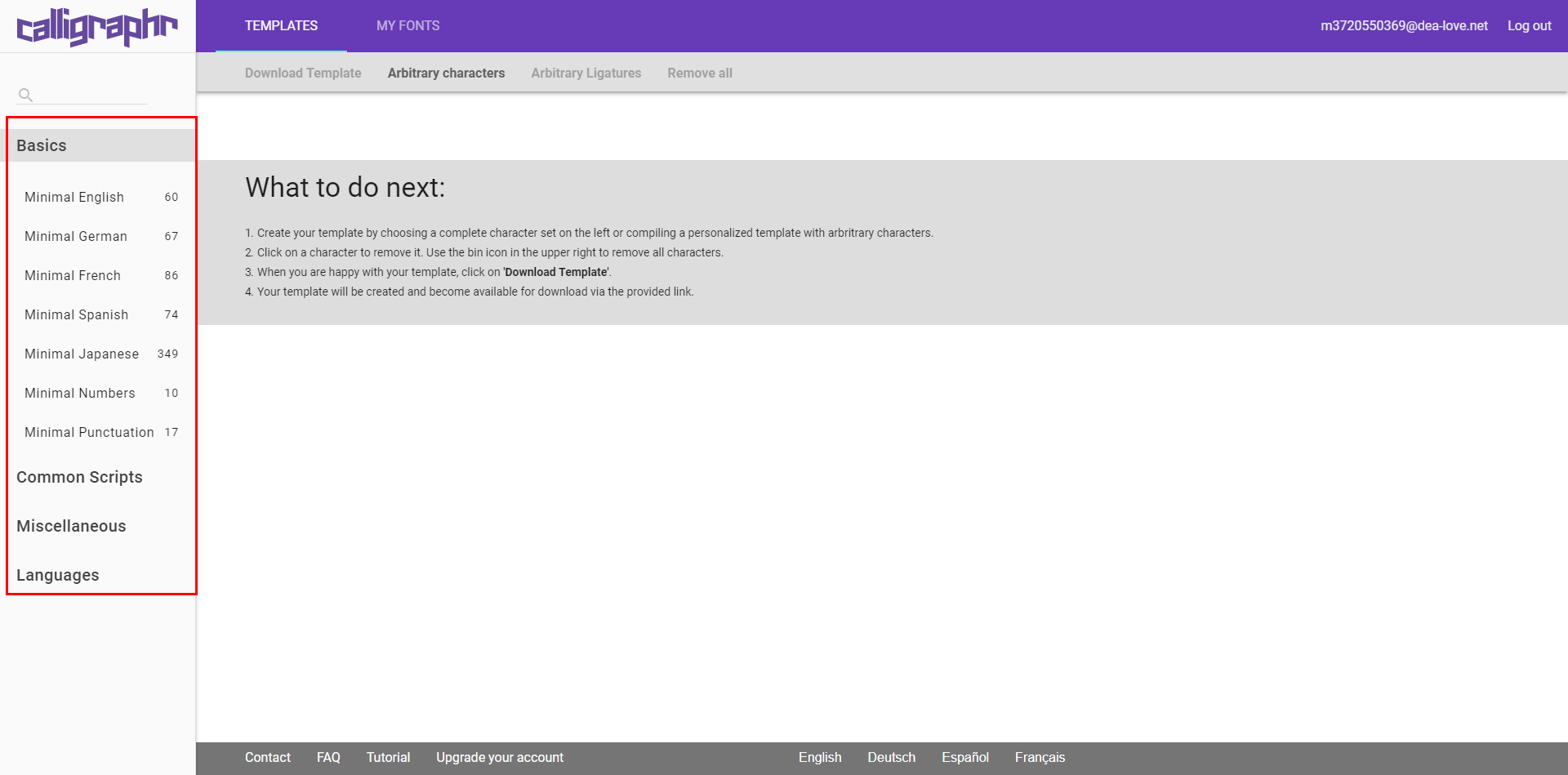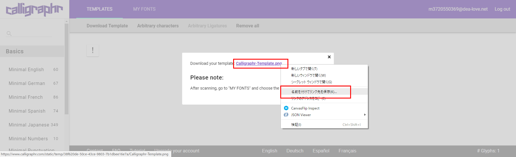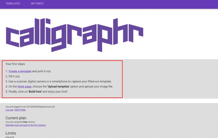とりあえず、”calligraphr”に移動してログインしておいてください。
