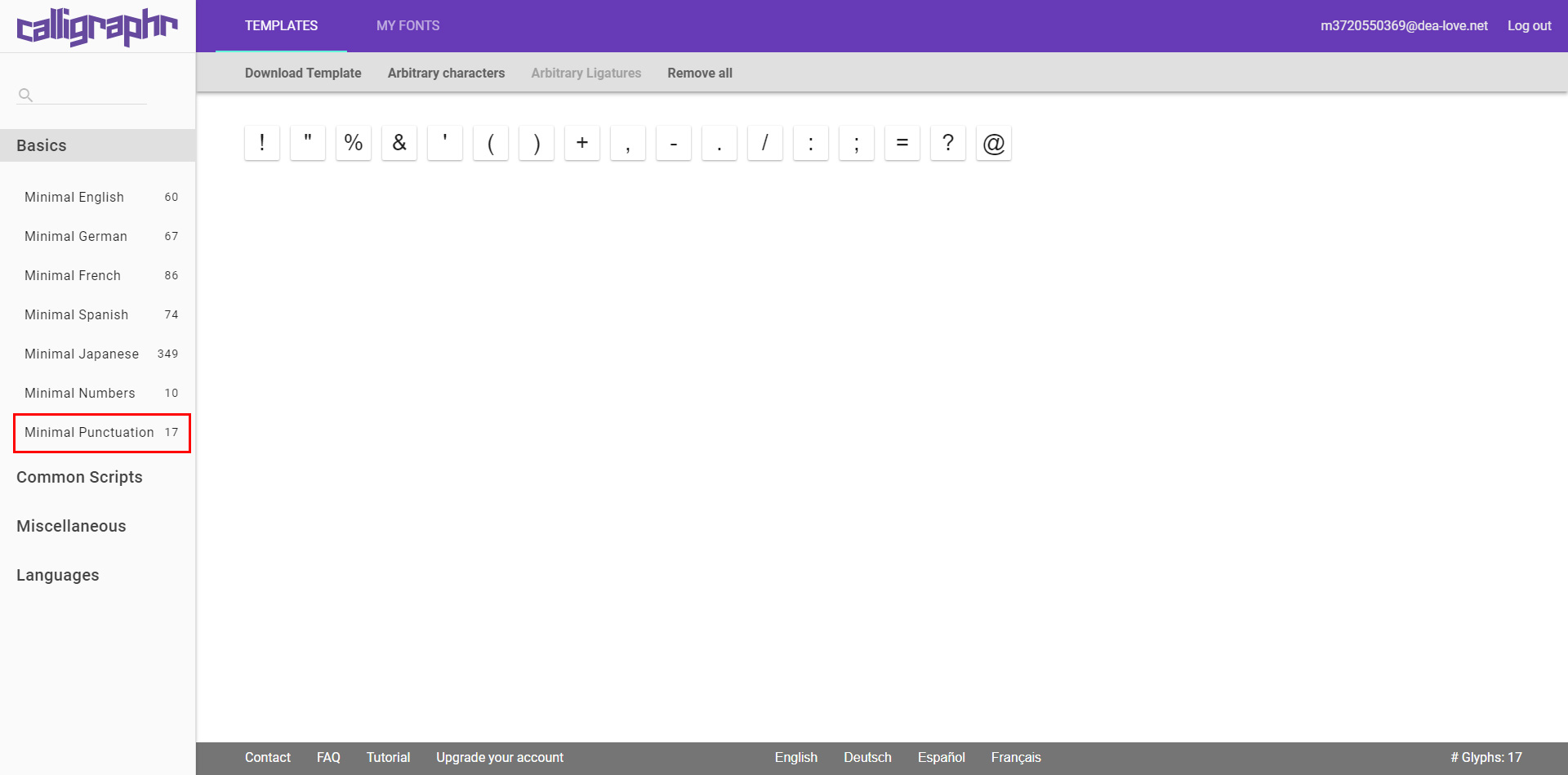 今回作成するのはアイコン一つだけなので一番数の少ない”Minimal Punctuation”を選択しました。