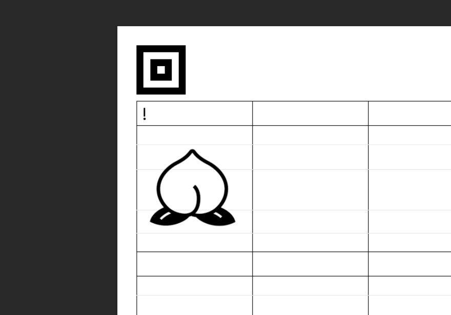 これを使って「!」と入力すると桃のアイコンが出て来るフォントを作ります。