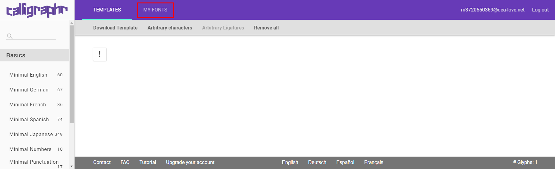 “calligraphr”のサイトに戻り、”MY FONTS”をクリックします。