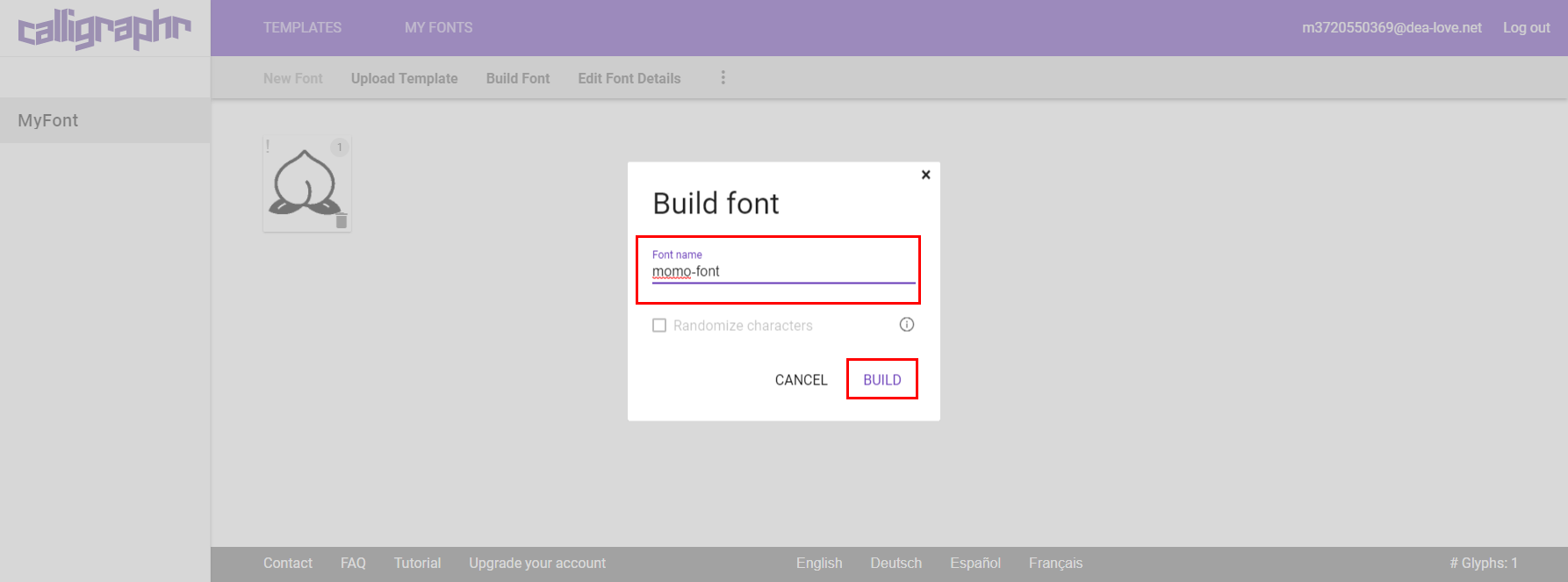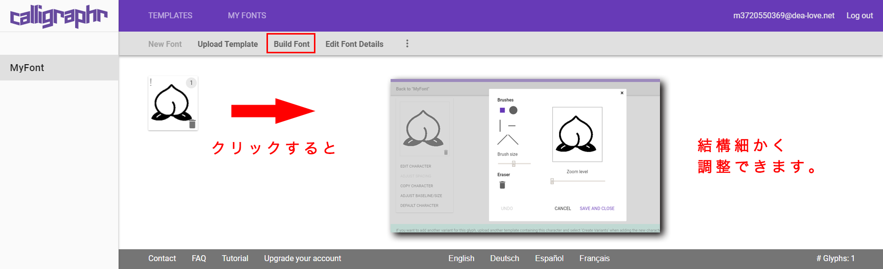 「調整なんていいからパリィィっ!!」って人は桃は無視して”Build Font”をクリック。