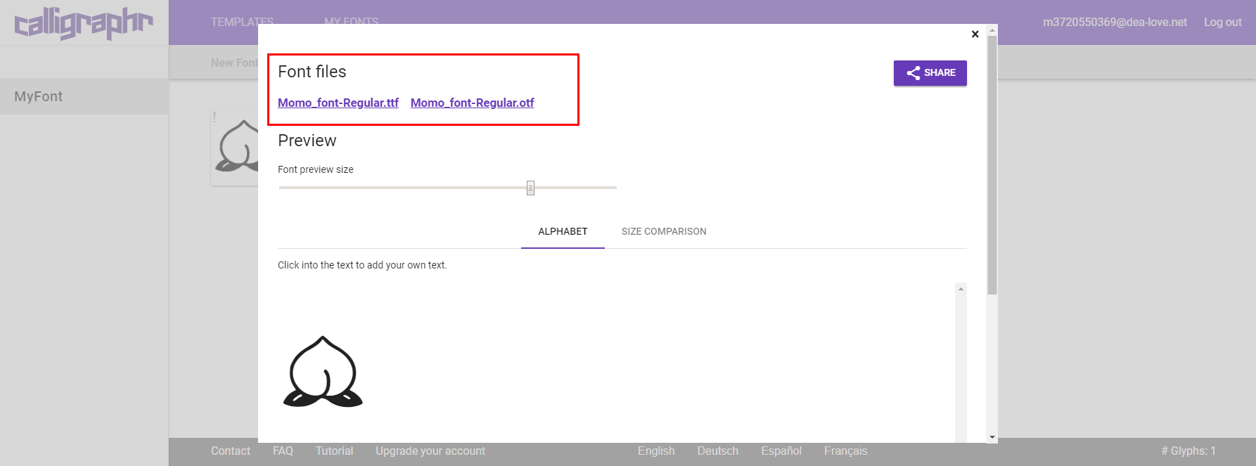 ttfとotfの形式でフォントが仕上がり、クリックすればダウンロードできます。