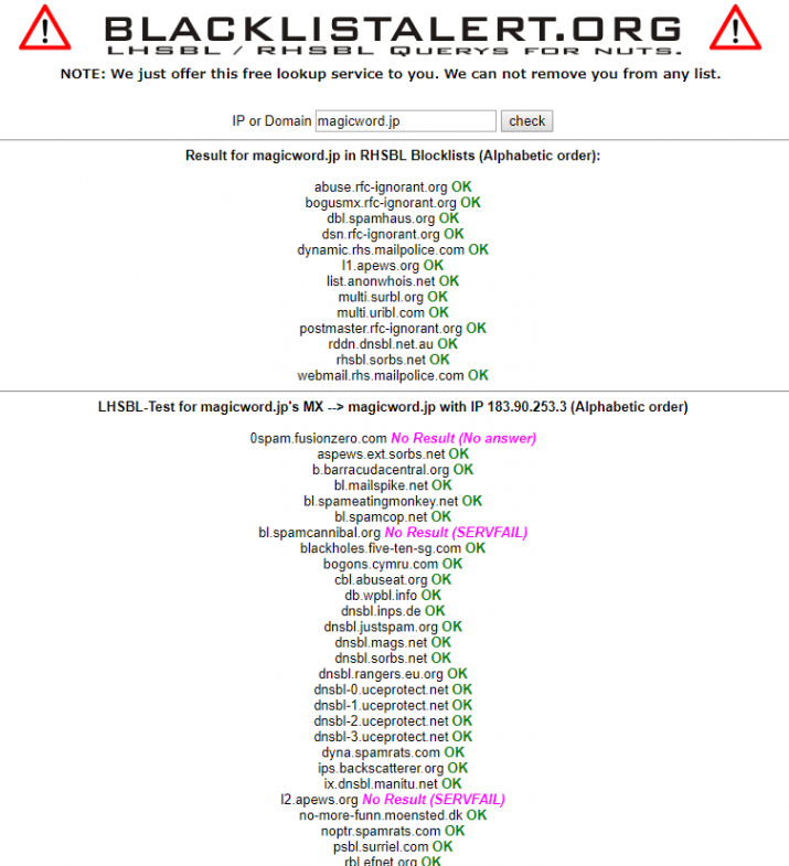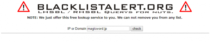 http://www.blacklistalert.org/ にアクセスして、自分のメールサーバーのドメイン名を入力して調べてみましょう。