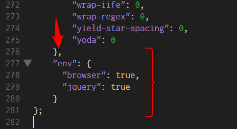 今回は ブラウザ系の変数(window, location など), jQuery , console がエラーにならないように設定しています。