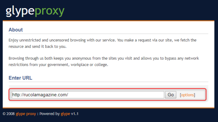 なお混雑時など表示できない場合がありますので、他の Glype / PHProxy を探す必要があります。