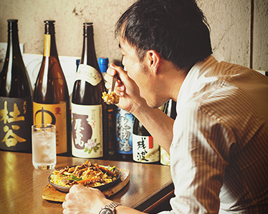 取材中にこっそり撮影用の炒飯を頬張る景山さん。