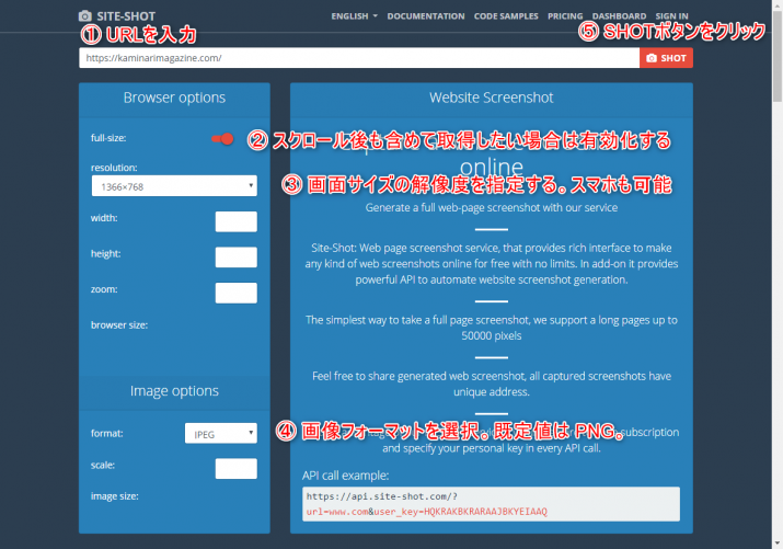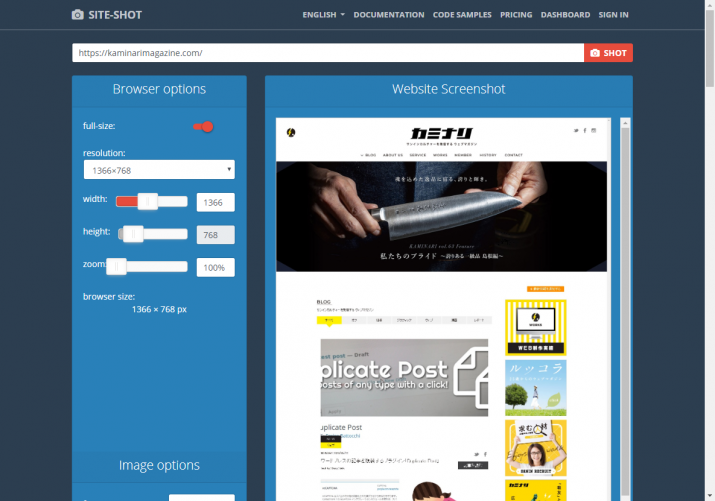 Site-Shot – ウェブページのスクリーンショットを撮るサービス