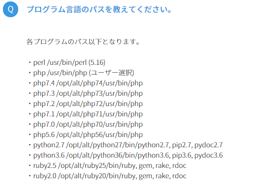ConoHa WINGSのプログラム言語のパスは現在以下となってます。