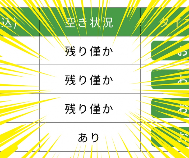 制作中は空き状況部分に仮の文字を入れた状態のみを見ていたため、先ほど現状況を見に行ったところ−−…