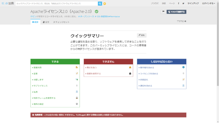 ライセンスの詳細を簡単に調べられるwebサービス「TLDRLegal」をご紹介します。