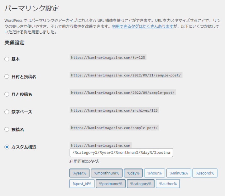 ドキュメントにも記載がないのですが、.htaccessファイルが書き換えられるのはパーマリンク設定を変更したタイミングです。