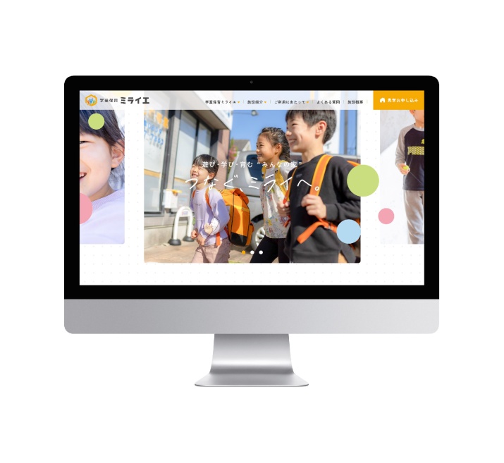 さらに、遊び・学ぶお子さんたちのハツラツとした笑顔の画像を用いることで、保護者の方へ安心と信頼のできる施設であるなという印象が伝わります。