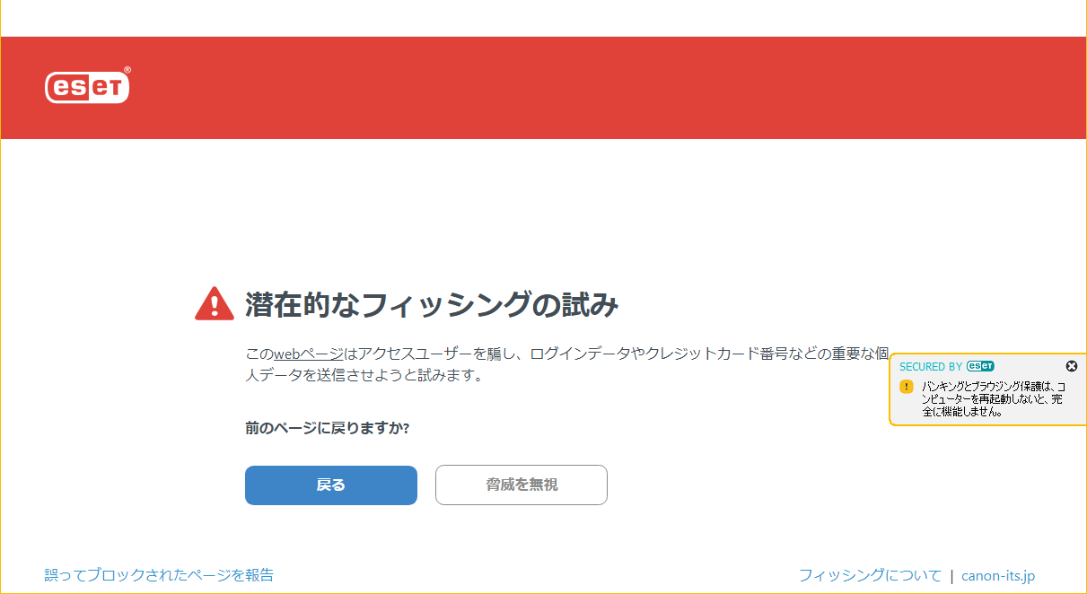 ESETでウェブサイトに「潜在的なフィッシングの試み」だと誤検知された場合の対処法とフロー