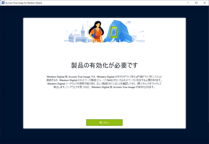 ではまず一番不安だった「Acronis True Image for Western Digital」から試してみましょう。