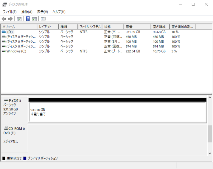 これは先ほど接続したSSDがまだ初期化していないためです。