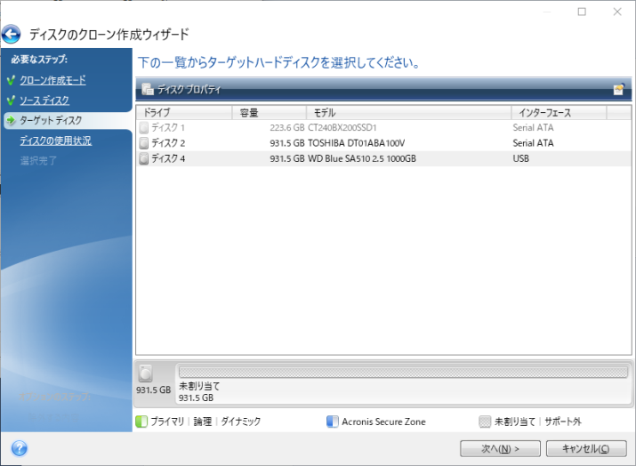 「Acronis True Image for Western Digital」で出来なかった原因は気になりますが、まぁ無事にできたので良しとすることにします。