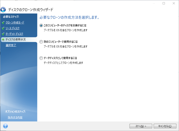 すると「ディスクのクローン作成」という項目があるので今回はこれを使っていきます。